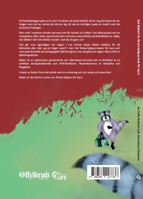 De fotbollstokiga tjejerna Ery och Tro älskar att spela fotboll, det är nog det bästa de vet. Helgen som de har väntat på närmar sig, då ska de nämligen spela en match mot det berömda Pulslaget.Men mitt i matchen händer det som inte får hända! Ery halkar i det blöta gräset och en motspelare råkar skära upp hennes ben med sina vassa dobbar på fotbollsskorna. Hjälp, det blöder! Och det blöder mycket. Vad ska de göra nu?Vad gör man egentligen när någon i ens närhet börjar blöda näsblod, får ett blåmärke eller skär sig på något vasst? I den här första-hjälpen-boken får barn och vuxna på ett enkelt och pedagogiskt sätt lära sig hur man ska göra när någon råkar ut för en blödningsolycka. Boken är en spännande, genomtänkt och välarbetad barnbok som är författad av en utbildad akutsjuksköterska och HLR-föreläsare. Illustrationerna är detaljrika och färgglada.I slutet av boken finns det också med en utmaning och ett recept på teaterblod.Boken är den första i serien om första-hjälpen för barn.