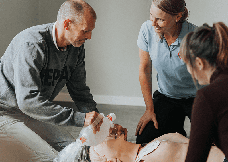 I båda utbildningarna kommer deltagarna att lära sig hur man behandlar en patient med hjärtstopp enligt HLR-rådets nya riktlinjer från 2021. Vi fokuserar på teamträning, säkerhet och defibrillering, allt eftersom era erfarenheter och nivå. Genom att använda flera olika sinnen befäster sig kunskapen på ett djupare sätt enligt flera studier. Därför består kursen av tre delar, inläst kurslitteratur, godkänd webutbildning samt genomförande av praktisk träning.